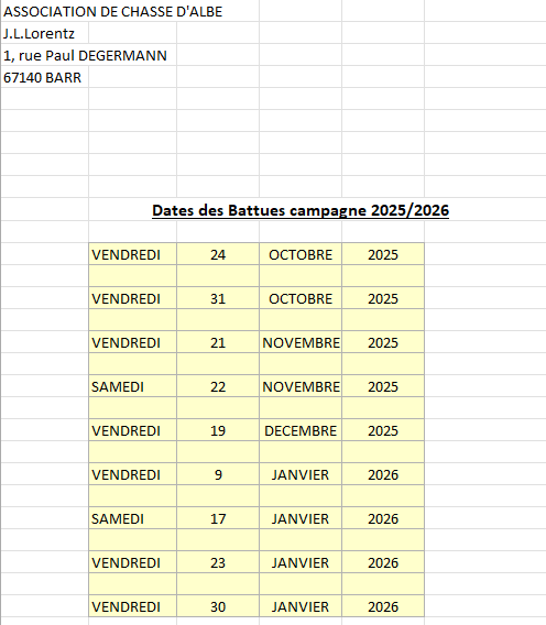 battues chasse 2025-2026 (nouvelle date ajoutée : le 24 octobre 2025)