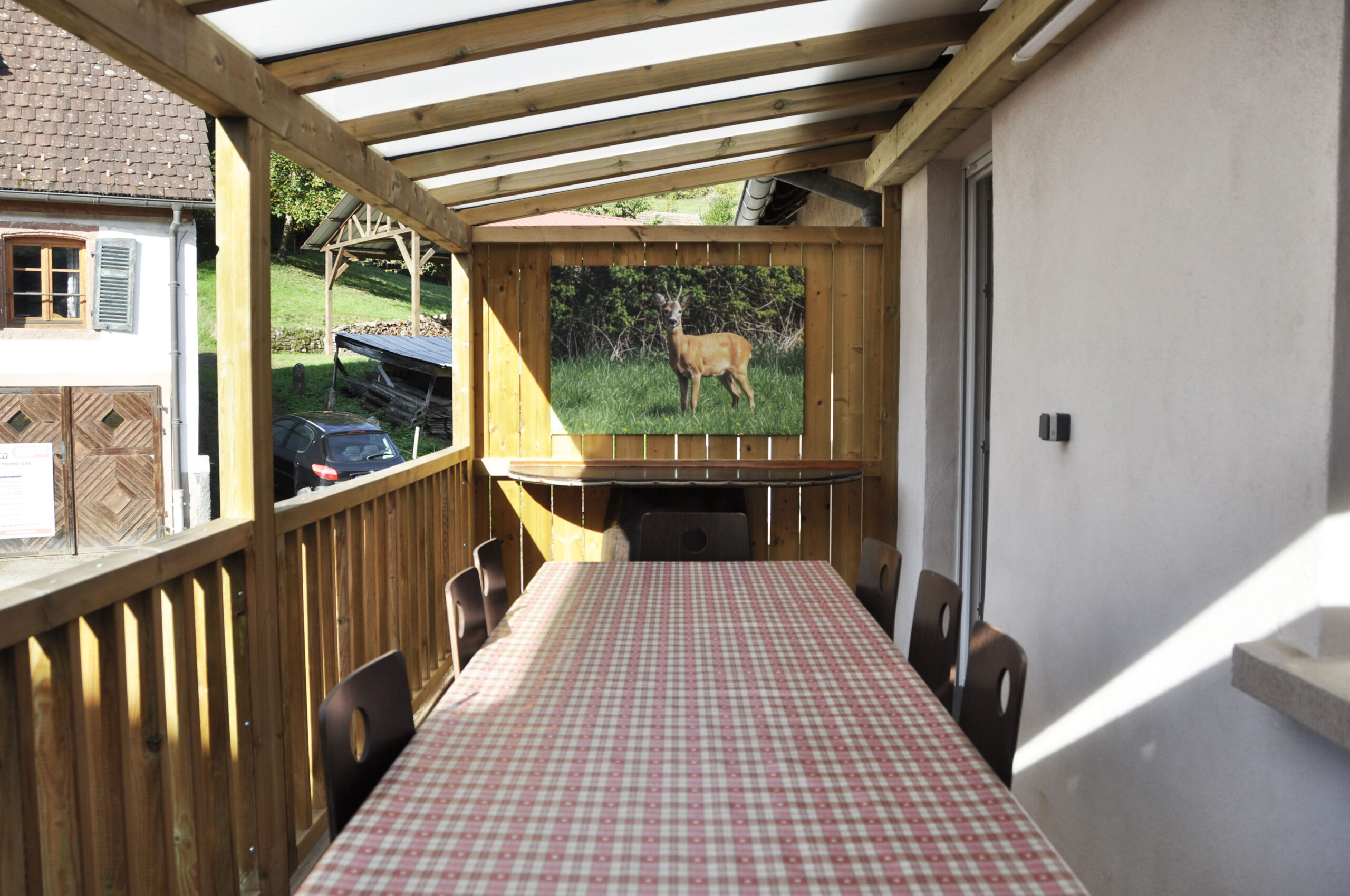 la terrasse de 10m2 est située plein sud et offre une belle vue sur le village et le vignoble.